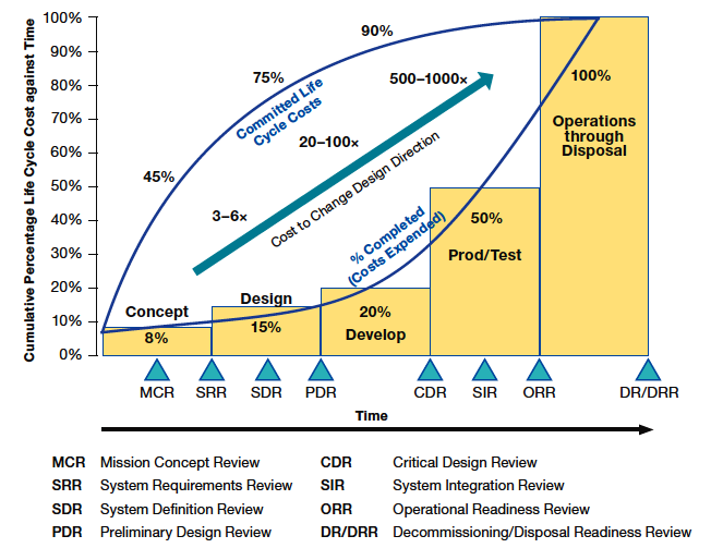 According to the NASA Systems Engineering Handbook, about half of the life-cycle cost is expected to be committed by the end of this phase ( Figure 2).