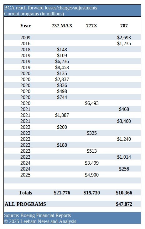Oct. 29, 2025, © Leeham News: The Boeing Company (BA) took another charge in the third quarter, to the tune of $4.9bn, on the struggling 777X program–which has yet to deliver a single aircraft to a customer.