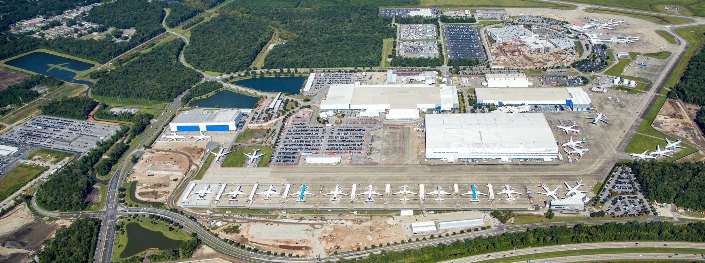 Boeing's current footprint in Charleston (SC). (Note the airplane-shaped park in the upper left.) Credit: Boeing.