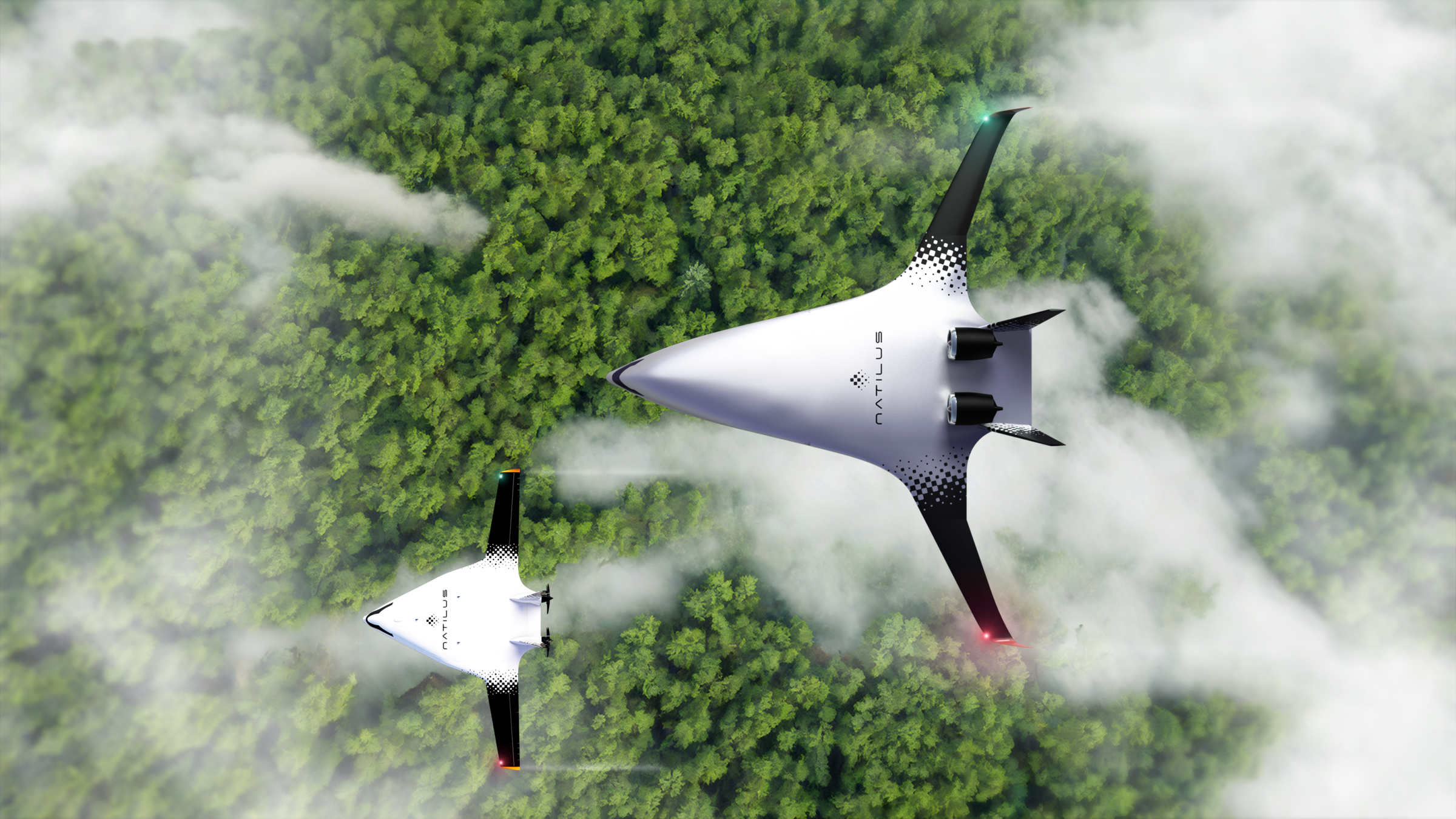 Natilus’ passenger BWB concept includes lower deck cargo space, unlike the JetZero Z4, which doesn’t have this capability. Credit: Natilus.