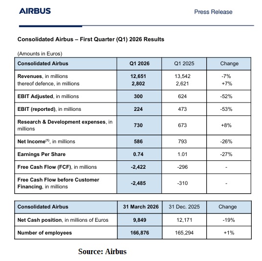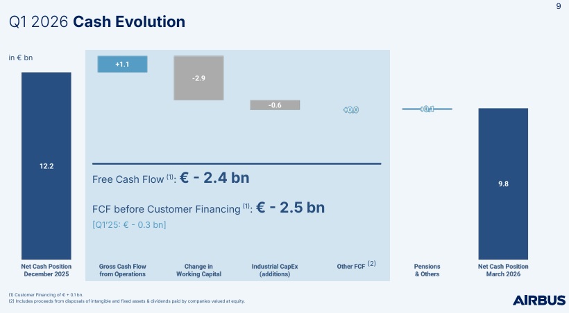 Airbus used €2.422bn in free-cash-flow (FCF) during 1Q2026.